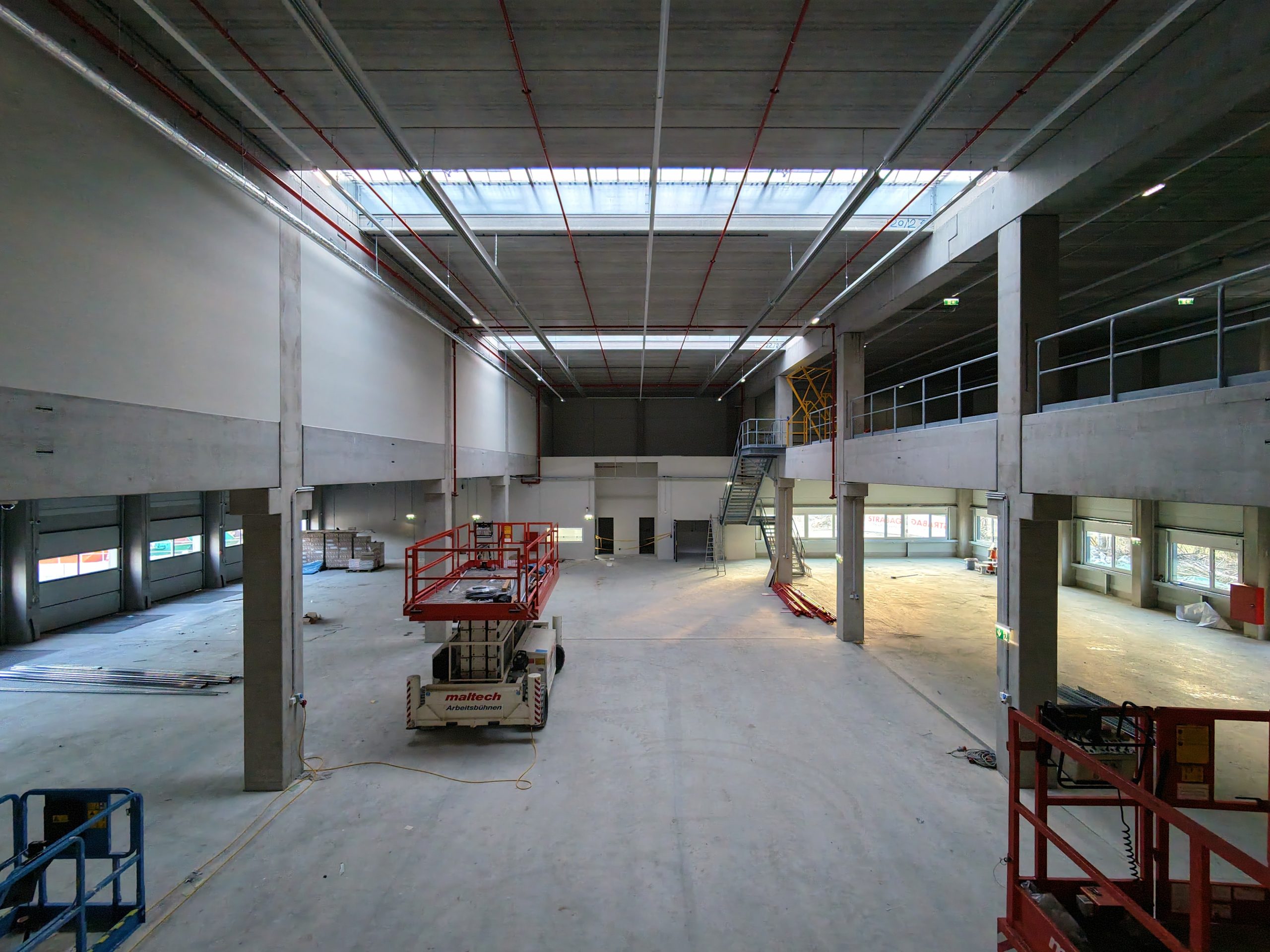 • Interior construction: While the building envelope is almost completed, interior construction is in full swing. The office section for the logistics staff will be finished by the end of May.