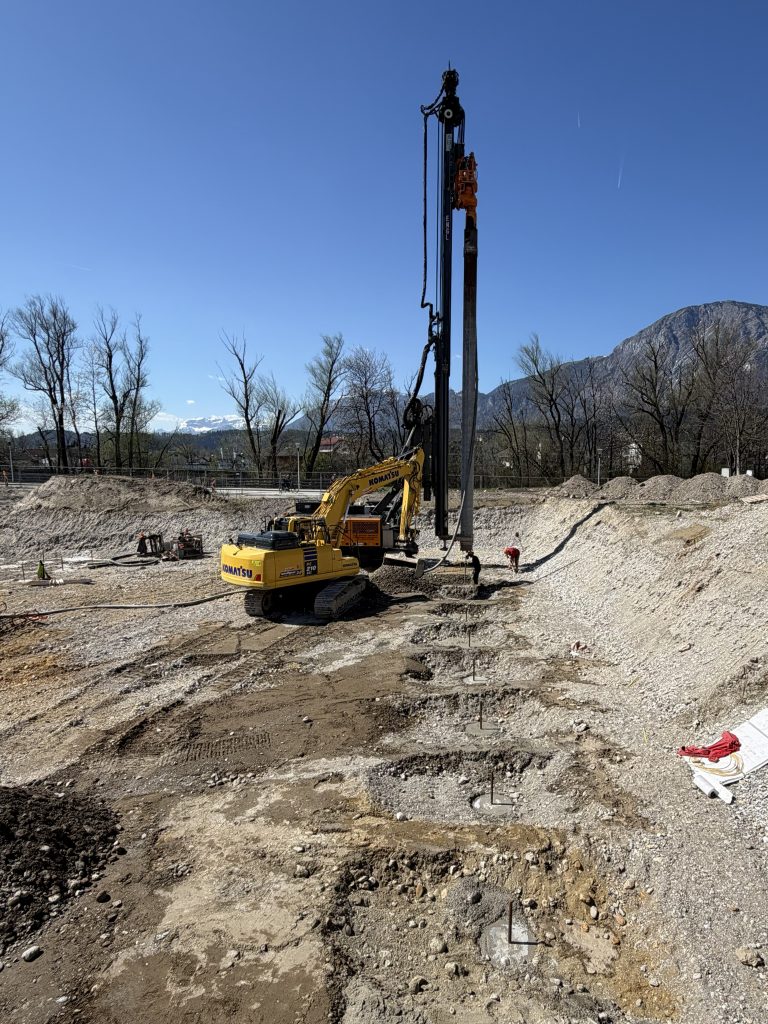 The starting signal for the HQ Office, the centerpiece of Horizon Quarter Kirchbichl, has been given! While little is visible on the surface, the specialized deep foundation work is currently creating the structural base for the future 13-story building.